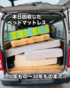 【マットレスの買い替え、10年が目安です!】 こちらは、本日午前中に新しいマットレス3件の配達でお客様のご自宅から回収させていただいた6枚の古いベッドマットレスたち。 10年ものから30年ものまで! ウイスキーやワインな […]