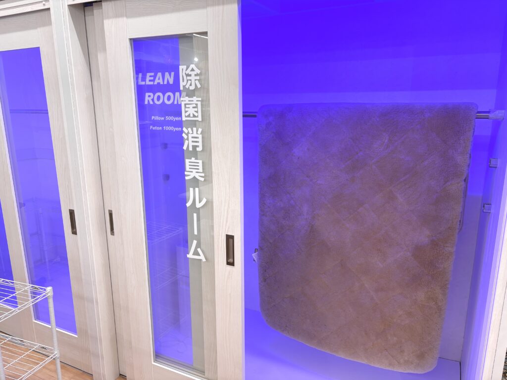 当店の除菌消臭ルームにて人体に安全な微量オゾンを使用し、20分間の除菌消臭でムートンがキレイになります。
