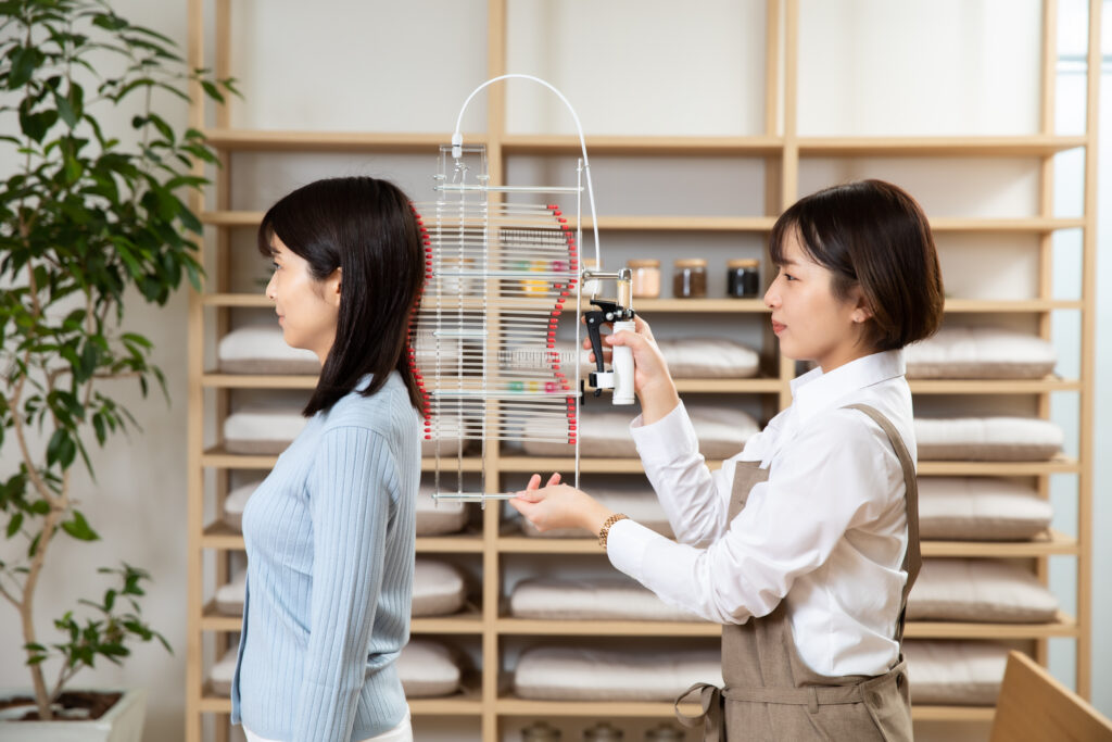 首のカーブを計測し、あなたに合う“基準の高さ”を算出します。