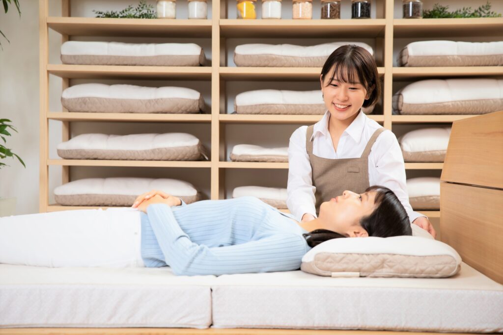 睡眠と寝具でお悩みのことがあれば当店のスタッフまでお気軽にご相談ください。